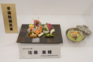 東京誠心の学生は、3部門の最高得点である「内閣総理大臣賞」を西洋料理部門で、総合2位の「参議院議長賞」を日本料理部門でダブル受賞を獲得しました!