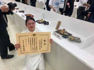 東京誠心の学生は、3部門の最高得点である「内閣総理大臣賞」を西洋料理部門で、総合2位の「参議院議長賞」を日本料理部門でダブル受賞を獲得しました!